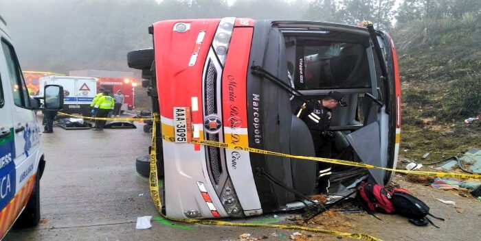Al menos 18 personas fallecieron y otras 25 resultaron heridas en un accidente de autobús interprovincial ocurrido anoche en una provincia amazónica de Ecuador, informó este domingo el Servicio Integrado de Seguridad ECU 911.