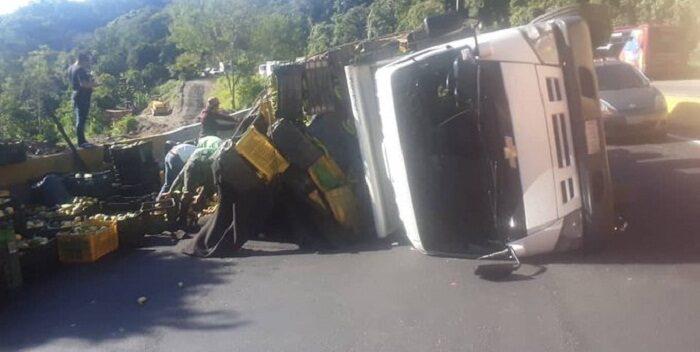 Este miércoles un camión que transportaba cestas de verduras y frutas, se volcó en el kilómetro 12 de la Autopista Regional del Centro, tramo del estado Miranda.