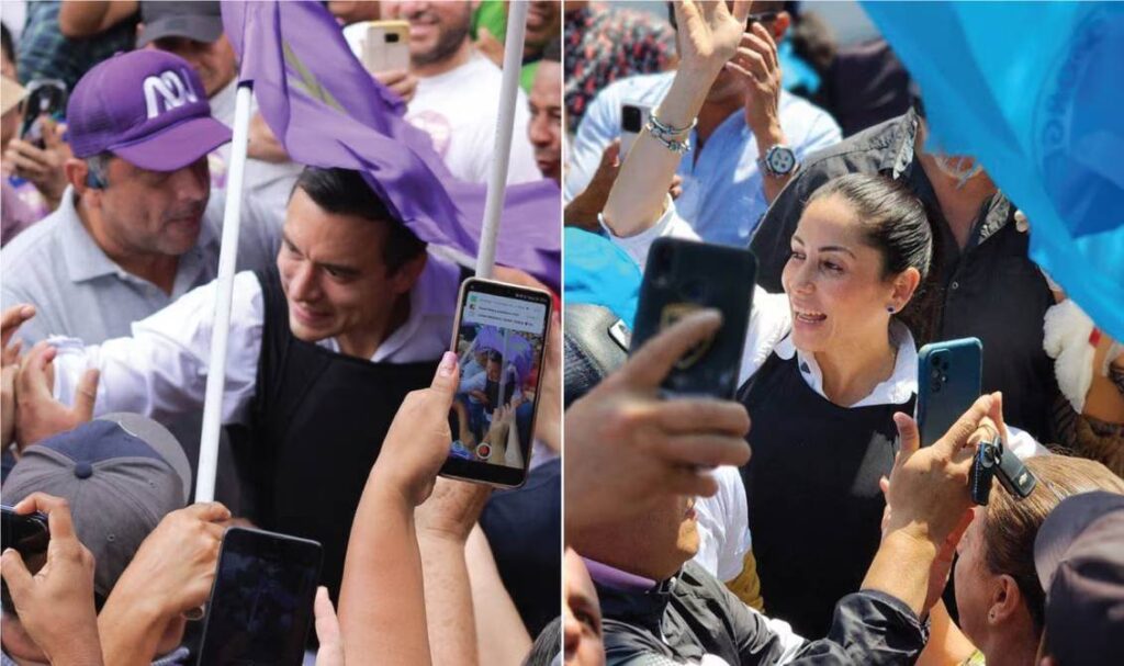 Candidatos con chalecos antibalas, agentes policiales y militares vestidos de traje portando mantas balísticas y caminando a centímetros del presidenciable, avanzadas de inteligencia policial, vehículos blindados, anillos de seguridad con agentes portando armas largas… Esas son las condiciones en las que llega a su final la campaña electoral de segunda vuelta de los candidatos presidenciales Luisa González, de la Revolución Ciudadana (RC), y Daniel Noboa, de la alianza Acción Democrática Nacional (ADN).