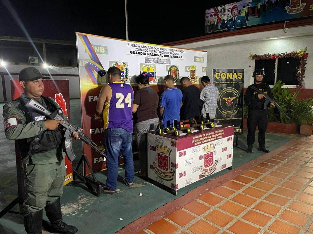El procedimiento se llevó a cabo en la parroquia Ricaurte del municipio Mara, estado Zulia, cuando los guardias nacionales capturaron en flagrancia a los mismos, logrando además la retención de un arma de fuego tipo escopetin, sin marcas, ni seriales, un vehículo tipo motocicleta y 6 equipos telefónicos.