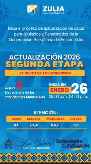 La segunda etapa de este registro regional comenzará el lunes 26 de enero. Esta fase incluirá a los beneficiarios que residen en el resto del Zulia.