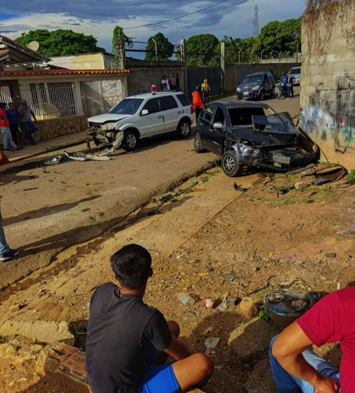 Un accidente vial en la calle Padre Aldama del sector El Manantial de Churuguara, municipio Federación, estado Falcón, dejó dos lesionados al ser arrollados por una Ford Eco Sport blanca que luego chocó contra un Ford Fiesta que impactó contra una pared.