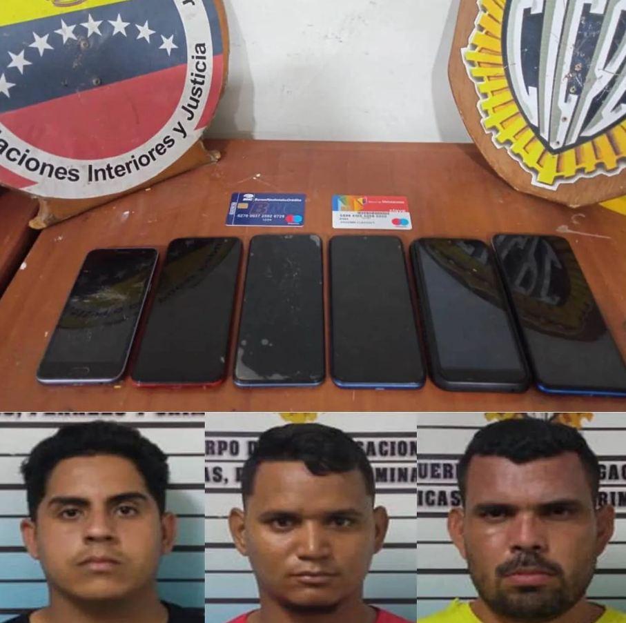 David Jesús López Bello (31), apodado El Guasón; Enyerber José Leguía Valencia (30) y Ferney Javier Baldovino Isea (21), fueron aprehendidos en el casco central, parroquia Carmen Herrera, municipio Cabimas del estado Zulia, por dedicarse a sustraer criptomonedas a empleados públicos.