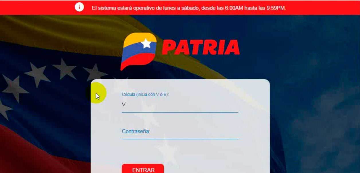 - Inicia sesión en el Sistema Patria con tu número de cédula y contraseña.