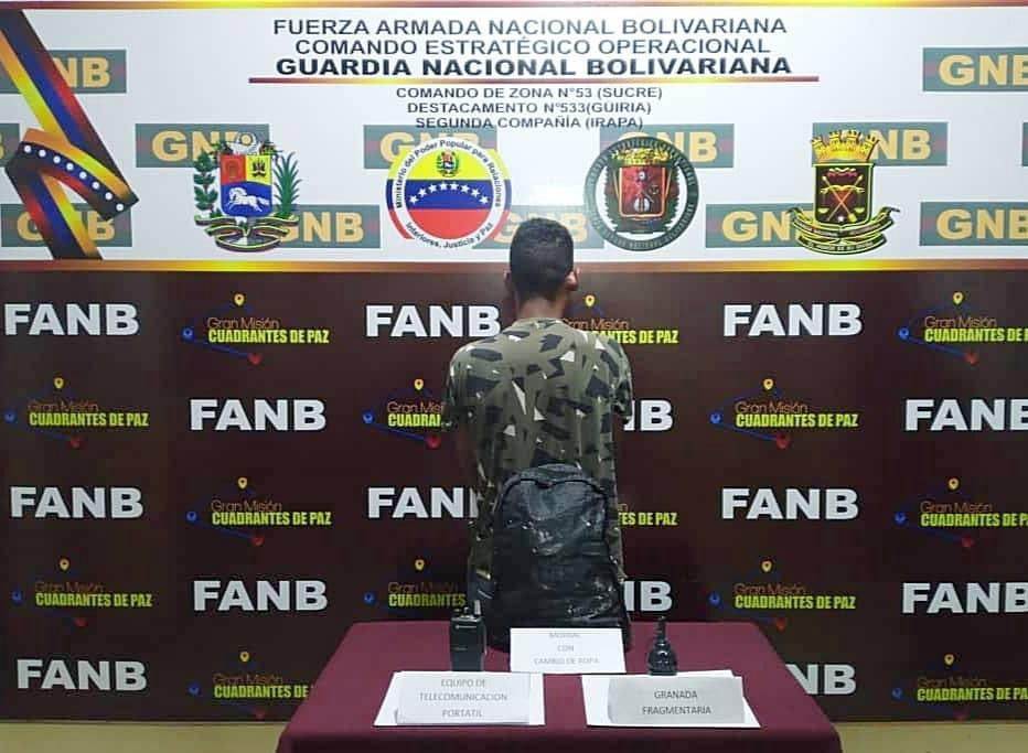La aprehensión se suscitó en el sector Río Grande Arriba en el municipio Mariño del estado Sucre, indicó el funcionario en sus redes sociales el domingo 7 de enero, donde agregó que se realizó durante labores de patrullaje.