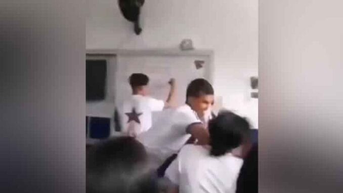 En las imágenes se observa la manera en la que el adolescente le propina un fuerte golpe a su compañera mientras discutían en el salón de clases por razones que aún son desconocidas.