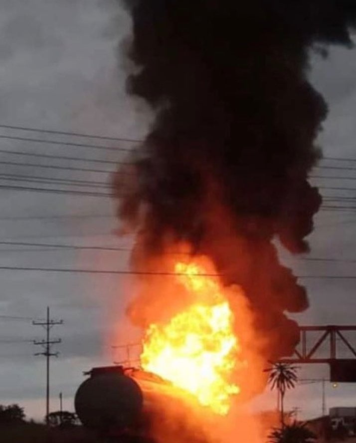 Hace pocos minutos, usuarios de la red social Twitter, han reportado la explosión por incendio de una gandola cargada con combustible, en la autopista La Verota en Santa Teresa del Tuy en el estado Miranda. Se presume que el calentamiento de las bandas de los frenos generó el fuego.