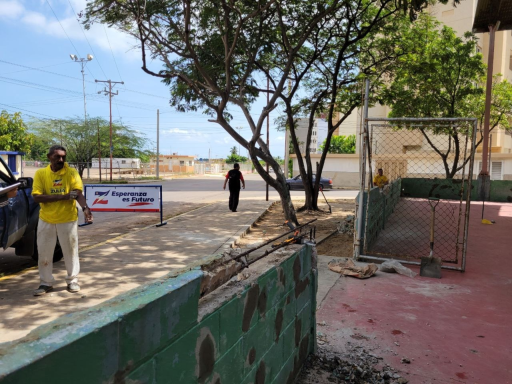 Giraldo señaló que los trabajos en las obras mencionadas son: la reparación de la cerca perimetral, la adecuación del sistema eléctrico, pintura en estructura metálica, pintura en paredes, demarcación piso, colocación de tableros de básquet y la construcción de arquerías. El presidente de FUNIDEZ detalló que, además “se está incluyendo en los espacios la construcción de las mesas de ajedrez y de ping-pong».