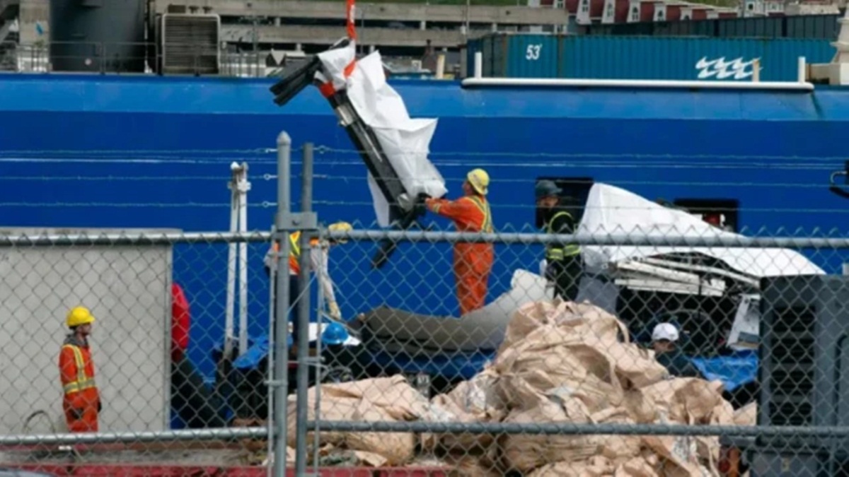 El barco canadiense Horizon Arctic depositó este miércoles los restos del sumergible “Titán”, el submarino que implosionó el pasado 18 de junio cuando realizaba una visita hacia los restos del Titanic con cinco personas a bordo, en el puerto de San Juan de Terranova, Canadá.