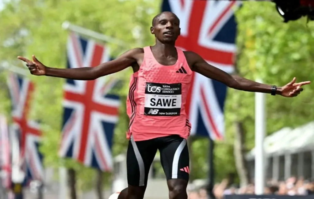 Con 29 años, el corredor cruzó la meta frente al Palacio de Buckingham con un tiempo de 1 hora, 59 minutos y 30 segundos. Sawe pulverizó así la marca anterior de Kelvin Kiptum lograda en el año 2023.