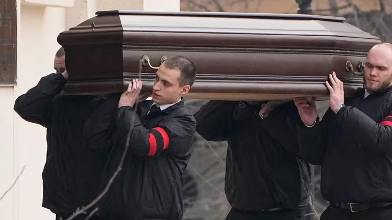 La despedida al líder opositor ruso Alexéi Navalny, fallecido en prisión, terminó este viernes en una iglesia del barrio moscovita de Mariino, y el féretro con su cuerpo se trasladó al cementerio de Borísovo, donde será enterrado.