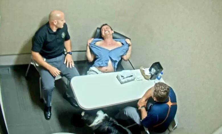 Tras quedarse solo en la sala de interrogatorios, el hombre intentó ahorcarse con el cordón de sus pantalones cortos, después de lo cual «fue arrestado, esposado y transportado a un hospital psiquiátrico para observación de 72 horas».