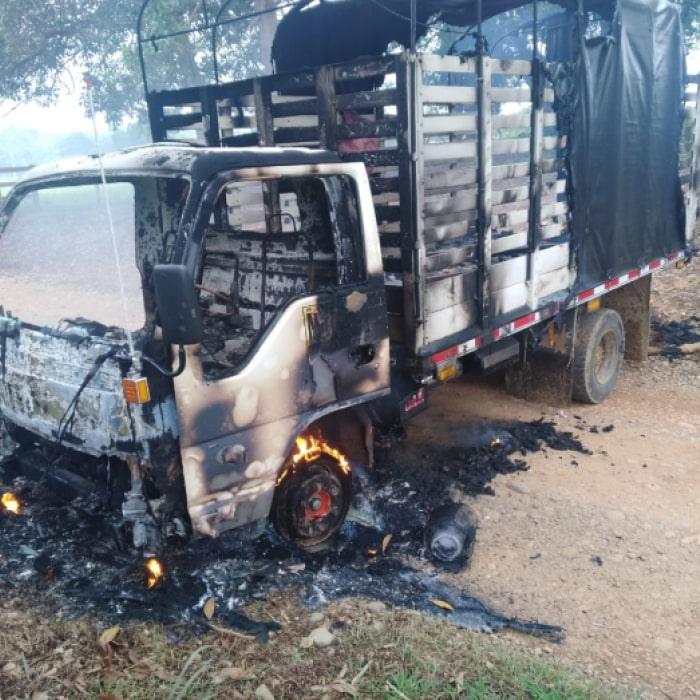 Entre los vehículos incinerados están dos automotores pertenecientes al programa Desminado Humanitario, los cuales fueron atacados en la vereda La Loma, a 40 minutos del casco urbano de Urrao, suroeste antioqueño.