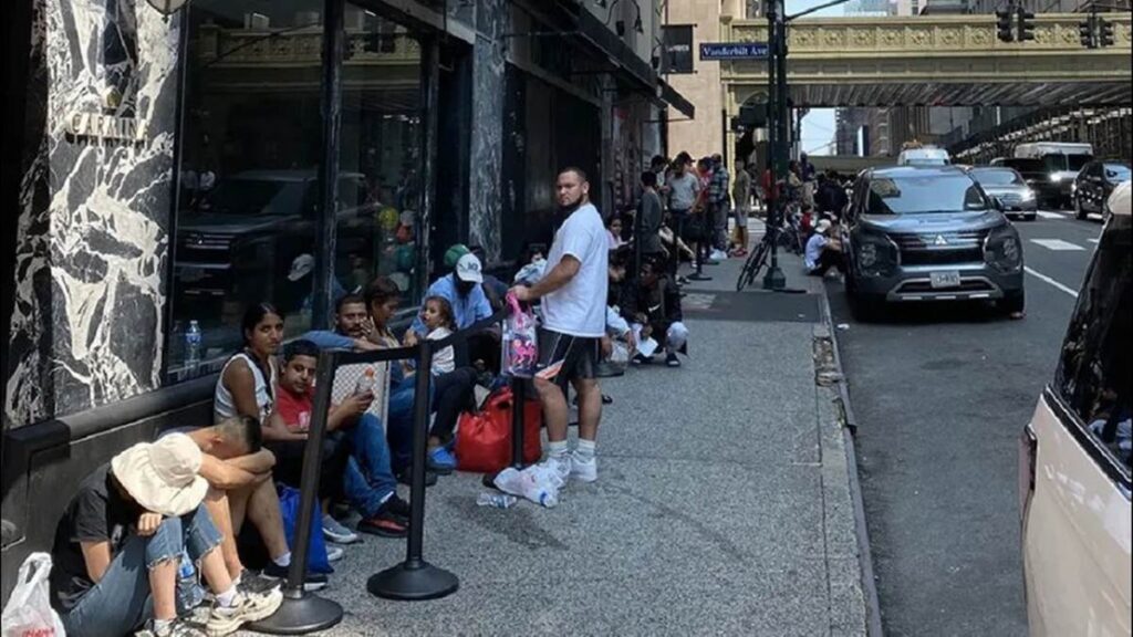 Migrantes que llegaron recientemente a Nueva York, Estados Unidos, enfrentan una complicada situación, ya que debido a la falta de camas y espacio para su albergue, no les queda de otras que dormir en los buses y calles de Manhattan.