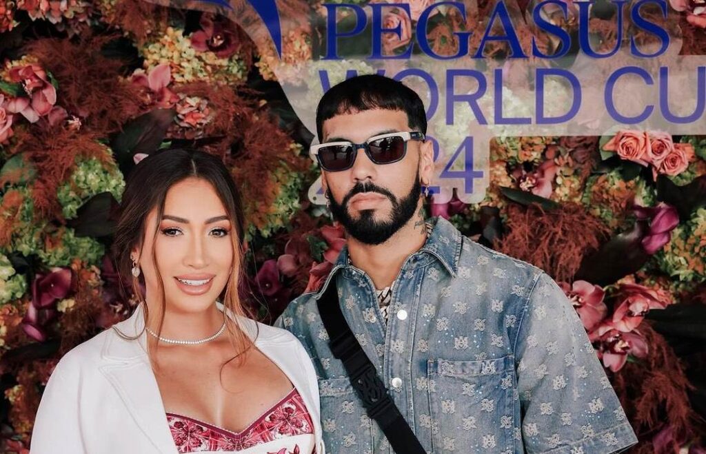 Anuel y Saavedra se mostraron tomados de la mano y rodeados de fuegos artificiales. La celebración estuvo marcada por el color rosado.