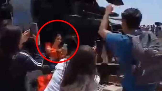 Una locomotora de vapor conocida como La Emperatriz, golpeó fuertemente en la cabeza a una mujer que buscaba tomarse una selfie mientras el tren pasaba por la ciudad de Nopala de Villagrán, en el estado de Hidalgo, en México.