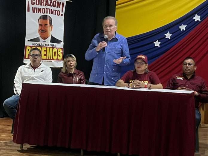 Es viral la tarde de este martes 11 de febrero un video en el que el diputado Didalco Bolívar, líder del partido Podemos, se encuentra declarando a los medios sobre diversos temas de interés nacional en lo que parece ser un evento político, mientras que dos mujeres que se encuentran a su lado se observan dándose empujones para figurar ante las camaras.